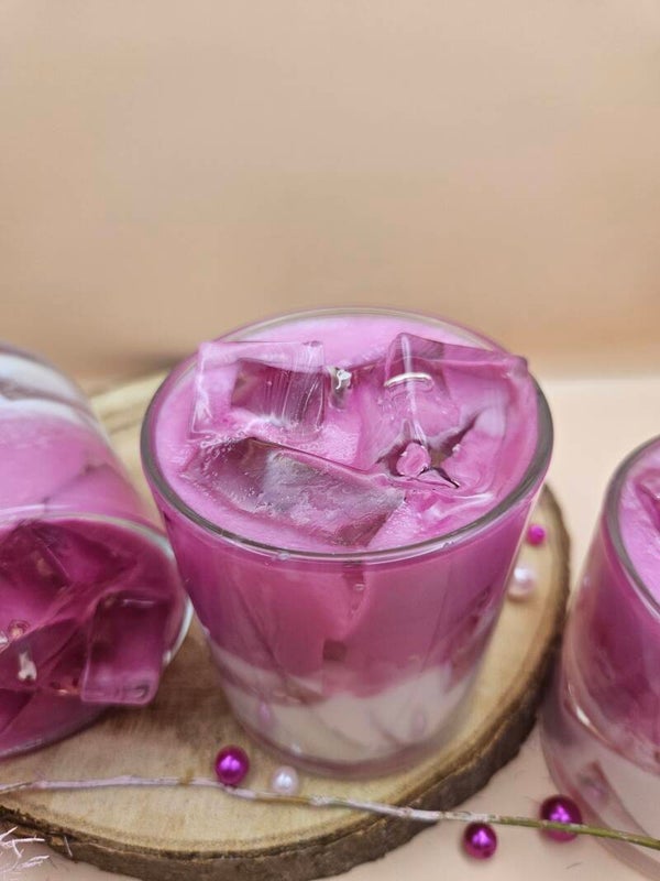 Genieße das Gefühl eines eiskalten Sommerdrinks – ganz ohne Glas! Unsere handgegossene Iced Kirsch Latte Kerze vereint den süßen, fruchtigen Duft reifer Kirschen mit einem Hauch von Frische. Das Highlight: realistisch aussehende „Eiswürfel“ als Dekoration, die deiner Kerze einen einzigartigen Look verleihen.
