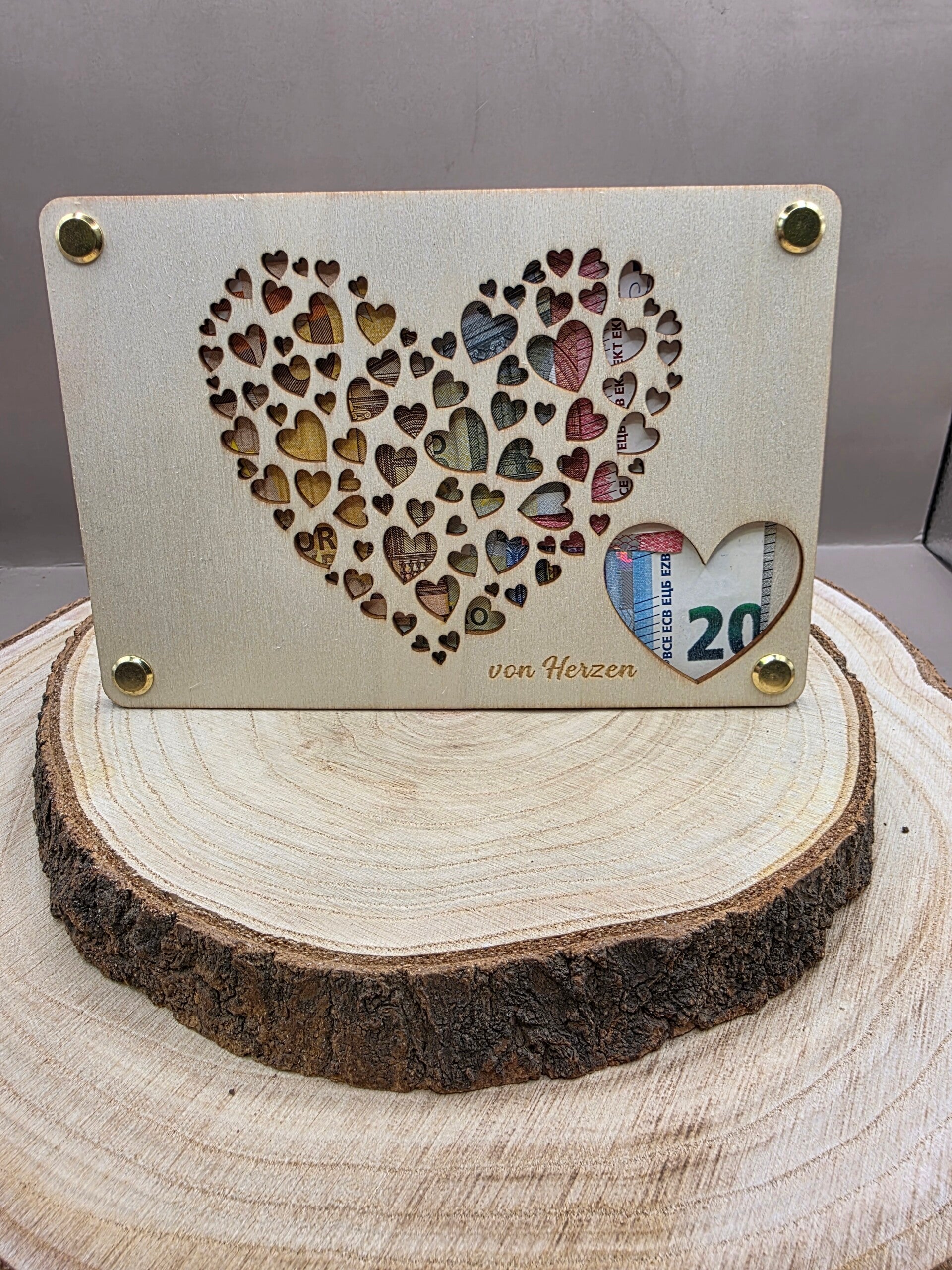 Ob als originelles Hochzeitsgeschenk, zum Geburtstag oder für jeden anderen besonderen Anlass – mit diesem einzigartigen Geldgeschenk aus Holz verschenkst du nicht nur Geld, sondern auch Kreativität, Wertigkeit und Liebe zum Detail.